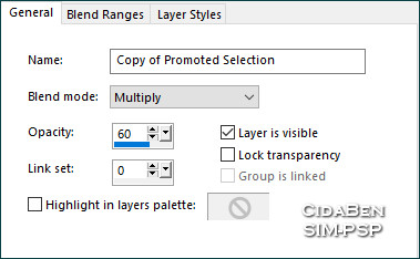 15 - Ativar a Layer > Promoted Selection. Layers > Properties > Blend mode: Hard Light > Opacity: 60%. Image > Resize 80% > All laters desmarcado.