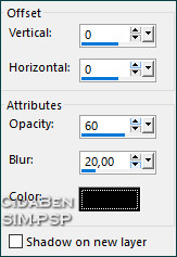 8 - Effects > 3D Effects > Drop Shadow > 0, 0, 60, 20, Color: #000000.