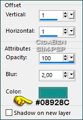 35 - Edit > Copy no > Decor _CBen25. Edit > Paste As New Layer. Layers > Properties > General > Blend mode: Luminance (L). Já está no lugar. Opcional***Effects > 3D Effects > Drop Shadow: 1, 1, 100, 2, color #08928c.