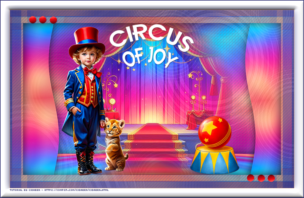 22 - Edit > Copy no Titulo27_Circus_of_Joy_CBen26. Edit > Paste As New Layer. Pick Tool > Position: X: 352,00 > Y: 47,00, ou posicionar como preferir.