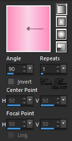 25 - Image > Add Borders: 2 px na cor do Background(#f9d3e8 2px na cor do Foreground(#fe8cba) 26 - Selections > Select All. Image > Add Borders > 40px na cor Branca (#FFFFFF) Selections > Invert. 27 - Pintar a seleção com um gradient formado com as cores em uso: Linear > Angle 90 > Repeats 1