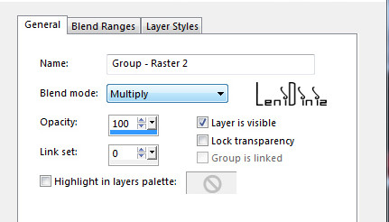 10- Layers > New Raster Layer, pinta com a cor #710000 Layer New Mask Layer > From Image: Narah_Mask_1368 Layers > Merge > Merge Group. Layers > Proprerties > Blend Mode > Multiply