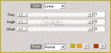 2 - Abra uma imagem transparente de 900x600px. Effects > Plugin Mehdi > Wavy Lab. Cor 1: #beae16 Cor 2: #ea9f2c Cor 3: #a63c08