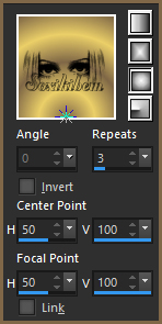 01- Abra o material no psp. Escolha duas cores de acordo com o tube escolhido. Escolhi para Foreground: #7f6747 e para o Background #ebcf68.