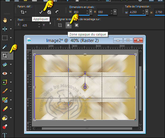 -- 18 -- Calques > Fusionner > Fusionner le calque de dessous. Outil Recadrer > Zone opaque du calque > Appliquer