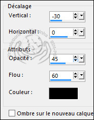 -- 22 -- Effets > Effets 3D > Ombre portée: -30/0/45/60/Couleur: #000000