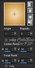 14 - Selections > Modify > Contract 2pxPintar com um gradiente > Sunburst > Angle > 0 , Repeats > 0, formado com as cores: Cor 2 > #Faebcc e a Cor 4 > #bd7811