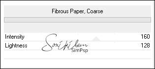 6 - Effects > Plugins > Filters Unlimited 2.0 > Paper Texture > Fibrous Paper, Coarse