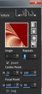 01- Open the material on the PSP, duplicate and close the original. Choose two colors to work with. Form a gradient> sunburst: