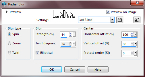 02- Open a transparent image of 800x450px. Paint with the gradient. Adjust > Blur > Radial Blur: