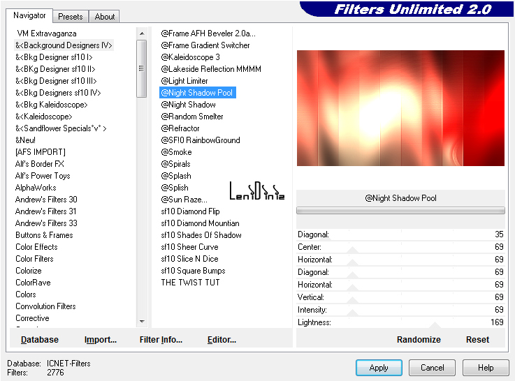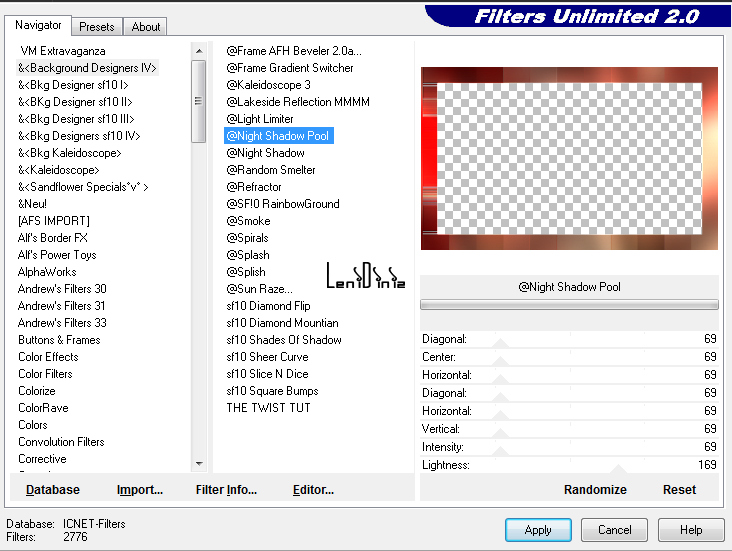 21- Effects > Plugin Unlimited > Back IV @Night ShadowPool: Diagonal 69.