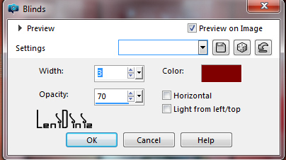 20- Effects > Texture Effects > Blinds > color: background (dark color) #800000