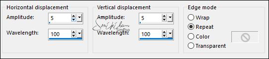 12 - Layers > Duplicate. Activate the Promoted Selection layer. Effects > Plugin Mura's Seamless > Shift at Zigzag.