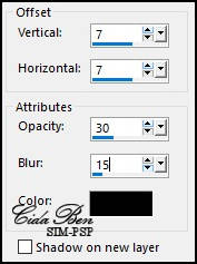 > 3d Effects > Drop Shadow: 0 > 0 > 100 > 30 > color: #000000.