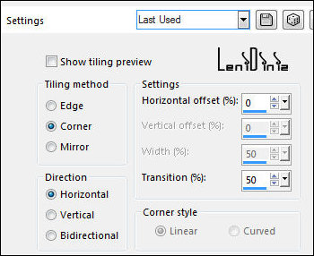 TUTORIAL 1- Escolha 2 cores para trabalhar. 02- Abre uma imagem transparente 900x550. Selections > Select All. 03- Edit > Copy no fundo_valentine. Edit > Paste into Selection. Selections > Select None. 04- Layers > Duplicate. 05- Effects > Plugin Mehdi > Sorting Tiling: