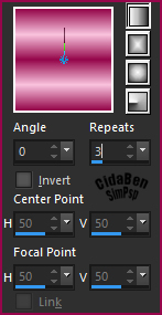 11 - Layers > Promote Background Layer. Selections > Load/Save Selection > Load Selection From Disk > cben_circle1. Layers > New Raste Layer. Pintar com um gradiente formadado com as cores em uso: Linear > > Angle 0 > Repeats 3