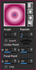 22 - Selections > Select All. Image > Add Borders > 30 px > Symmetric > com qualquer cor . Selections > Invert Pintar com o gradiente formadado com as cores em uso: Sunburst > Angle: 0 > Repeats: 2.