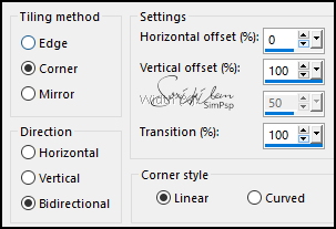 9 - Selections > Load/Save Selections > Load Selection from Disk: SelectionFest75_3ByXiki. Layers > New Raster Layer. Pintar esta seleção com a cor 3. Effects > Texture Effects > Blinds: Color: com a cor do foreground.