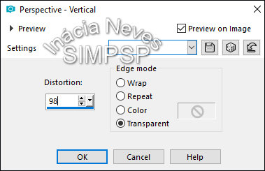7 - Abrir a visibilidade e ativar a layer Copy (2) of Raster 1; Effects > Geometric Effects > Perspective Vertical, como no print abaixo:
