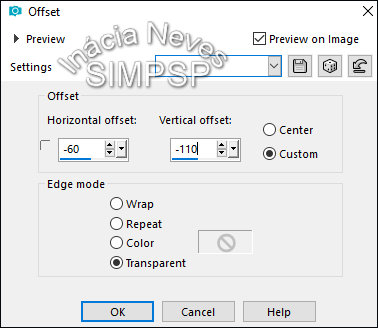 9 - Abrir a visibilidade da Layer Copy of Raster 1, mas manter a layer Merged ativa; Image > Free Rotate > Left > 25,00 > All Layers desmarcado; Effects > Image Effects > Offset, como no print abaixo: