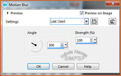 Selections > Select None. Adjust > Blur > Motion Blur, conforme abaixo: