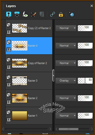 Layers > Properties > General > Blend Mode: Overlay > Opacity: 50%