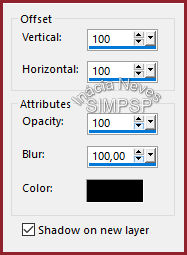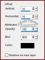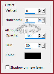 8- Edit > Copy no tube principal. Edit > Paste as New Layer Reduzir e aplicar Drop Shadow ao seu gosto. Adjust > Sharpness > Sharpen. 9- Fazer as bordas: Image > Add Borders > 1 px > symmetric > #8f222c (cor escura de uso) Image > Add Borders > 1 px > symmetric > #e9cbd1 (cor clara de uso) Image > Add Borders > 1 px > symmetric > #8f222c (cor escura de uso)