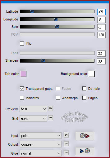 7- Ativar a layer do topo Effects > Plugin > Flaming Pear > Flexify 2: Image > Resize > 80% > All Layers Desmarcado Effecs > 3D Effects > Drop Shadow: