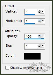 Effects > 3D Effects > Drop Shadow > 1/1/100/1 Cor: Preto:
