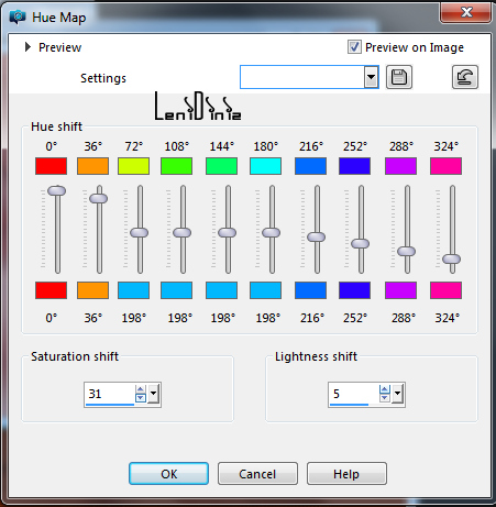 22- THIS STEP IS OPTIONAL: I USED AN EFFECT TO HIGHLIGHT THIS LAYER. Adjust > Hue and Saturation > Hue Map Saturation shift > 31 Ligtness shift 5 Or you can modify the setting according to the chosen color.