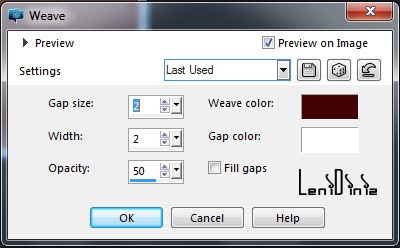 03- Effects > Texture Effects > Weave: Weave Color: #440404 (Foreground)