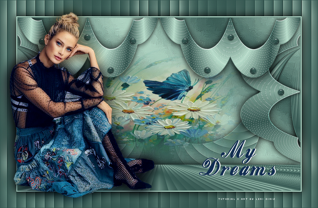 TRADUÇÕES Obrigada aos nossos tradutores! Material 1 tube principal à sua escolha 1 misted floral à sua escolha alpha_chanel Decor_leni_mydreams. Título_leni_mydreams. Plugins Ap Lines. Flaming Pear. Mura's Meister. Cores #355751 (Foreground) #b8dccb (Background)