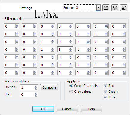 Material 1 tube principal à sua escolha Alpha_channel_moments_heureux_leni Decor_moments_heureux_leni Decor_moments_heureux_leni_2 titulo_moments_heureux_leni Plugins Xero > Fritillary Penta.com > VTR2 Penta.com > Dot and Cross Filters Unlimited > &>BKG Designer sf10 II > Patcwork Mura's Seamless > Emboss at Alpha Nota: O plugin Penta.com foi importado pelo Unlimited.