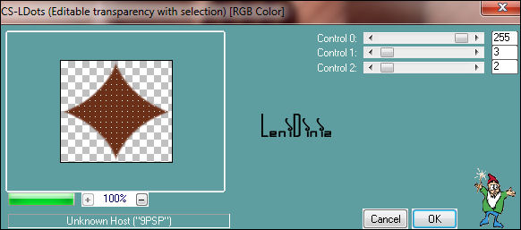 14- Layers > New Raster Layer. Pintar com a cor do foreground (cor escura). Effects > Plugins > Carolaine and Sensibility > CS-LDots: