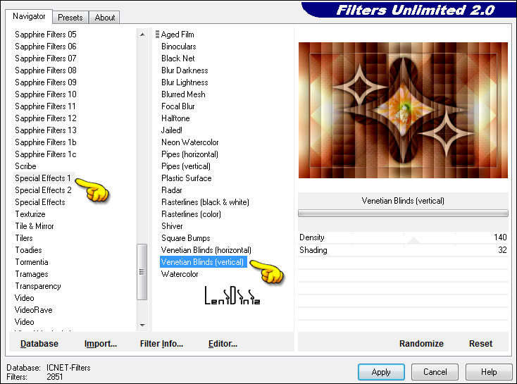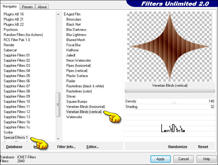 20- Effects > Plugins > Filters Unlimited > Special Effects 1 > Venetian Blinds (vertical)