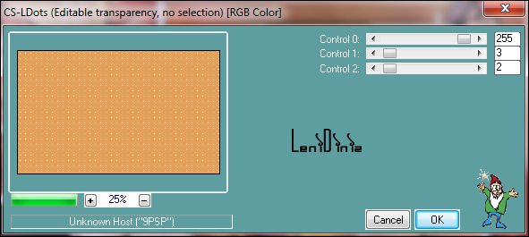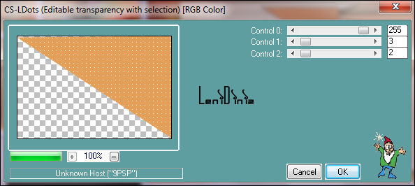 02- Ativar a cópia do arquivo alpha_blooming_LeniDiniz. Pintar com a cor do Foreground. Effects > Plugins > Carolaine and Sensibility > CS_LDots: