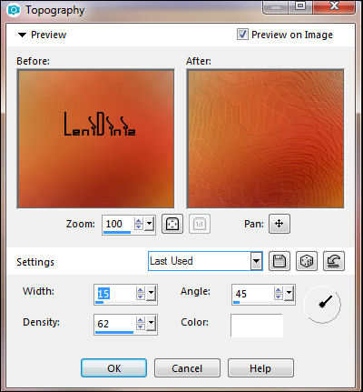 33- Adjust > Blur > Gaussian Blur: 15 Effects > Artistic Effects > Topography: