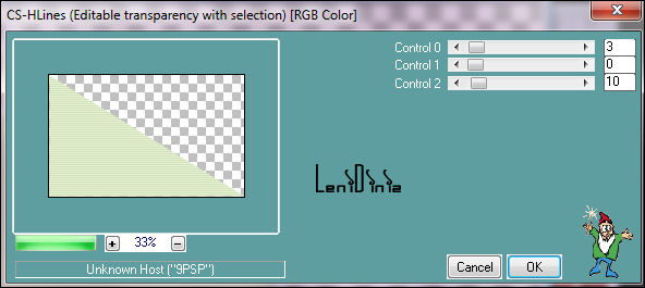 12- Layers > Properties > General > Blend Mode: Normal - Opacity: 80. Effects > Plugin Carolaine and Sensibility > CS-HLines: