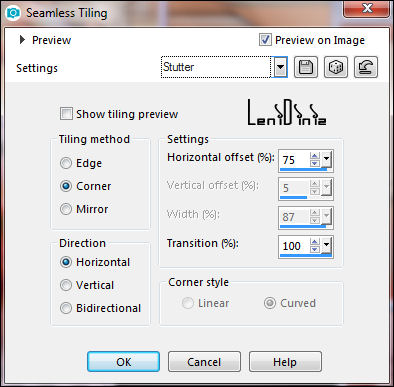 23- Effects > 3D Effects > Drop Shadow: 0, 0, 80, 20, Color: #000000 Selections > Select None. Layers > Duplicate. 24- Effects > Image Effects > Seamless Tiling: Stutter