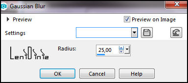 12- Layers > New Raster Layer. Ativar a cópia do arquivo LeniDiniz-23pascoa Edit > Copy. No Trabalho... Edit > Paste Into Selection. 13- Adjust > Blur > Gaussian Blur: 25