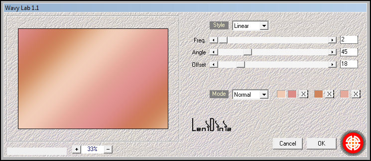 TUTORIAL 01- Abra os materiais no PSP. Duplique e feche os originais. Ative a cópia do arquivo Apha_Channel_mãe_leni. Effects > Plugins > Mehdi > Wavy Lab 1.1 Colocando a sequência das cores em: 2 - 1 - 3 - 4