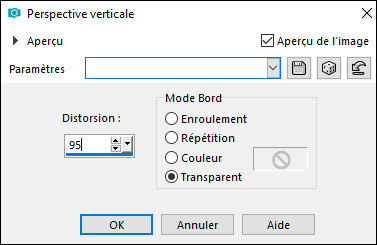 - 11 - Effets > Effets géométriques > Perspective verticale: 95, transparent.