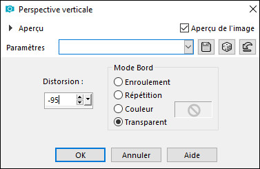 Effets > Effets géométriques > Perspective verticale: -95, transparent.
