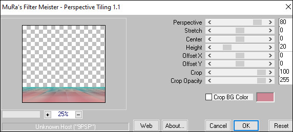 - 18 - Activer le calque "Raster 2" Effets > Modules externes > Mura's Meister > Perspective Tiling.