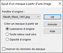- 30 - Activer le calque "Copie de Raster 1" Calques > Nouveau calque raster... Le remplir la sélection avec la couleur #FFFFFF. Calques > Nouveau calque de masque > A partir d'une image > Narah_Mask_1441