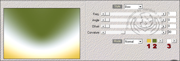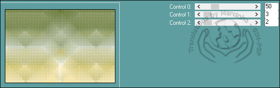 - 02 - Ouvrir le fichier grafico_72.pspimage. Effets > Modules externes > Mehdi > Wavy Lab: 1 = l'arrière-plan: #e8c446 2 = premier plan: #62722a 3 = #FFFFFF
