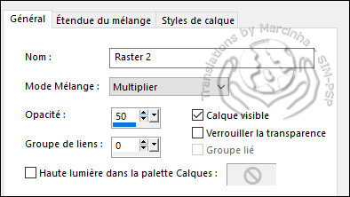 - 12 - Calques > Propriétés > Général > Mode Mélange: Multiplier - Opacité: 50%