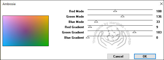 - 20 - Effets > Modules externes > Filter Factory Gallery M > Ambrosia: 108, 136, 33, 9, 183, 0.