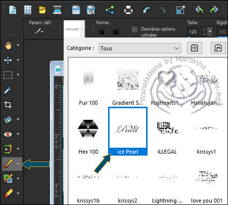 - 26 - Ouvrir le fichier titulo_icePearl_xiki. en psp. Fichier > Exporter > Pinceau personnalisé: