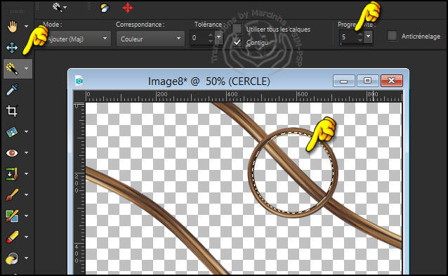 -- 20 -- Outil Baguette Magique > sélectionner les côtés du cercle: